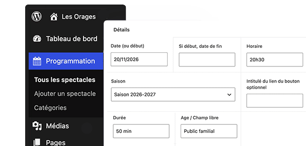 Je m’appuie sur WordPress et ses outils natifs, avec du développement sur mesure quand c’est nécessaire.